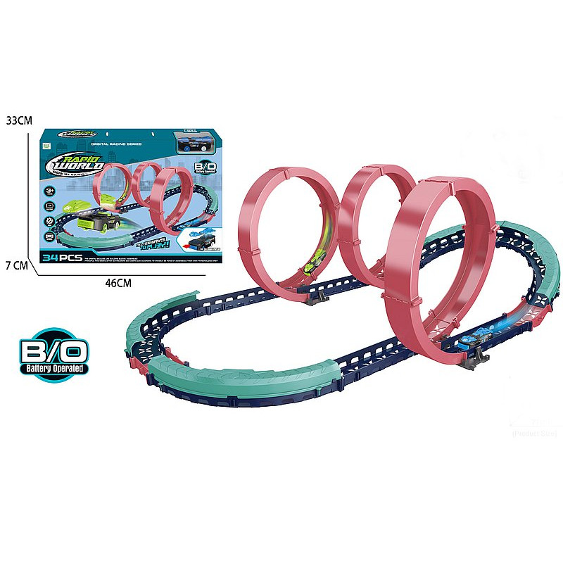tor samochodowy na baterie, 3 pętle, wymiary rozłożonego 77x51x26cm, 1 autko; 46x33x7cm,