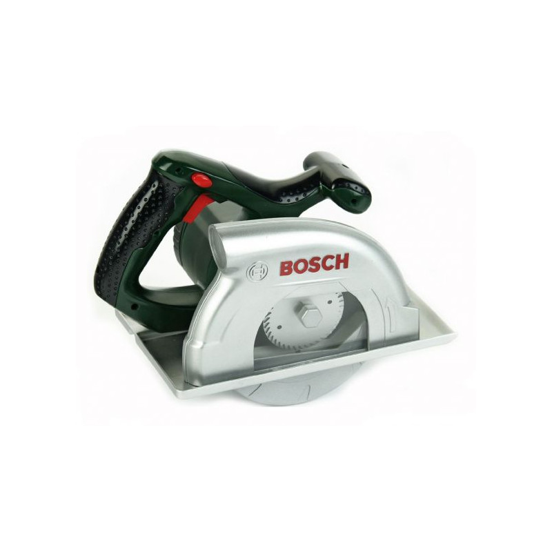 Piła tarczowa Bosch, posiadająca obracającą się, bezpieczną tarczę do cięcia, emituje realistyczne dźwieki, posiada oświetlenie miejsca pracy. Baterie R6 1,5V AA