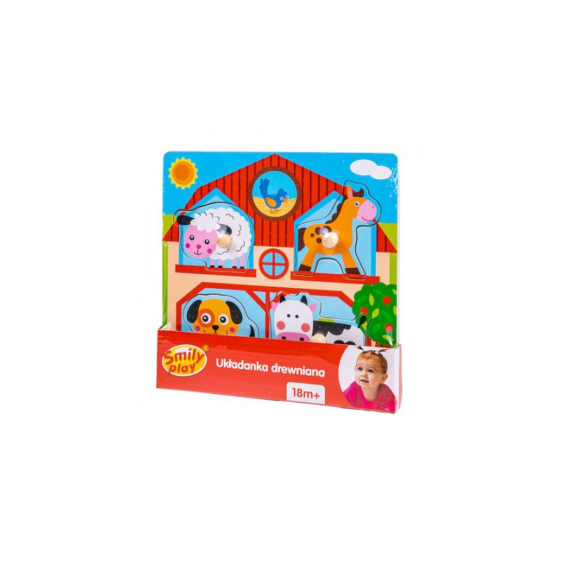 drewniana puzzle z uchwytami z motywem zwierząt mieszkających na wsi. Kształty