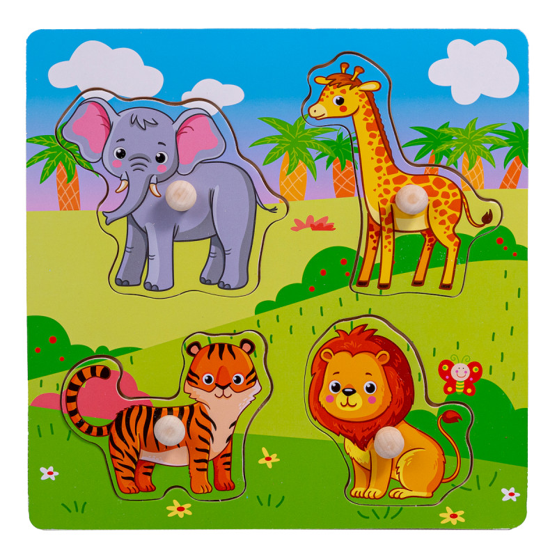 układanka puzzle – uchwyty z wizerunkami zwierzątek z safari. Rozwija w