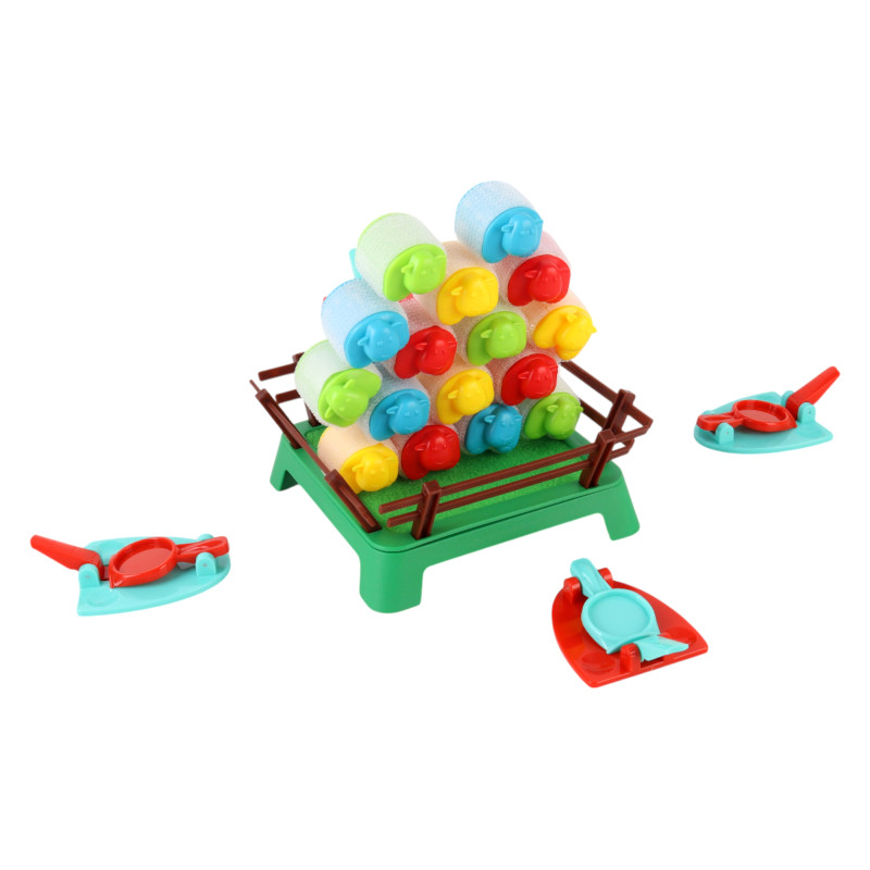 Zasady są proste, a emocje ogromne ? wystarczy nacisnąć wyrzutnię i obserwować, jak owieczki skaczą w powietrzu. Gra idealnie sprawdza się zarówno podczas rodzinnych spotkań, jak i zabawy w gronie przyjaciół. W zestawie znajduje się kolorowa zagroda, zestaw owieczek oraz cztery wyrzutnie, dzięki czemu może w niej uczestniczyć do czterech graczy.