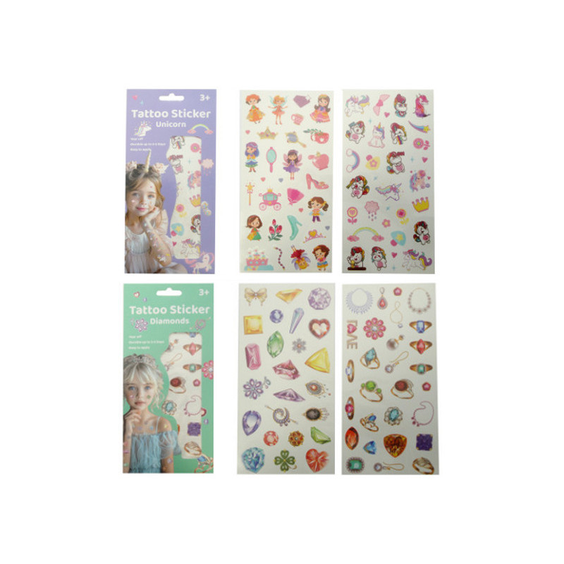 Tatuaże dla dzieci to tymczasowe, bezpieczne ozdoby naklejane na skórę. Są popularne na urodzinach. Te kolorowe tatuaże mają różne motywy: biżuterii i jednorożców. Produkt występuje w kilku wersjach kolorystycznych, wybierany losowo. Cena dotyczy jednej sztuki. Podane wymiary są wymiarami opakowania.