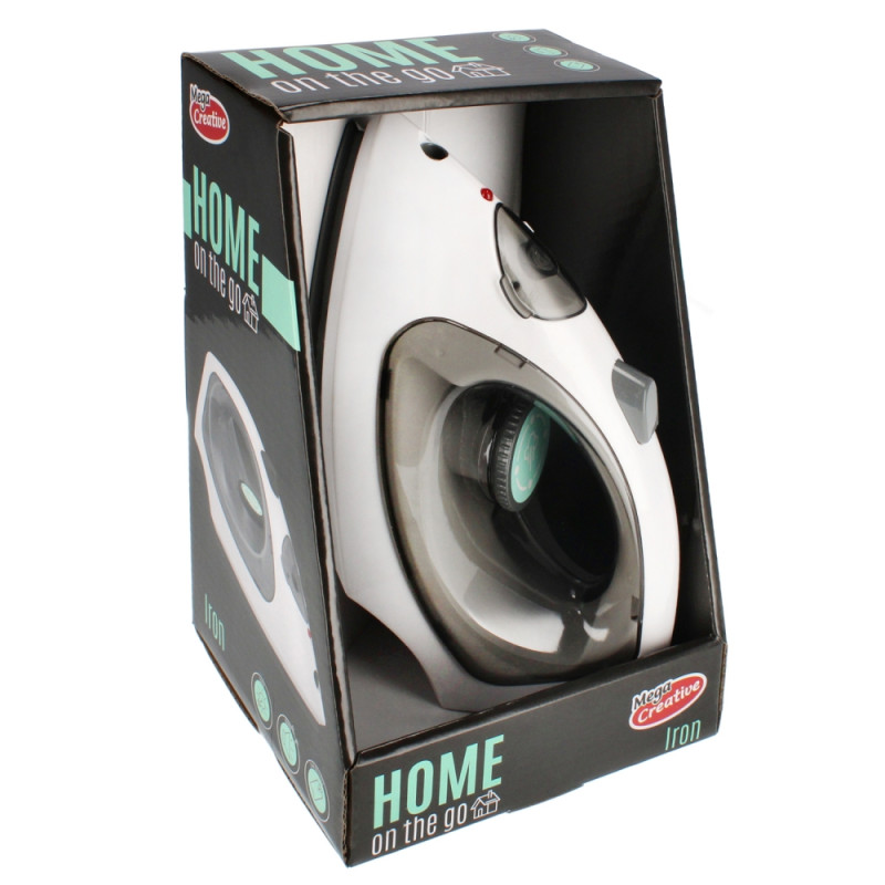 Żelazko wykonane z plastiku. Wymiary: produktu dł. x wys. x gł. cm 23x13x10, wymiary opakowania dł. x wys.x gł. cm 15x23x14