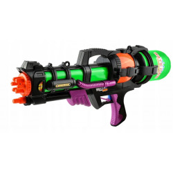 Pistolet na wodę broń wodna karabin 60cm długości strzelanie sikawka. Prezentowany pistolet ma długość 60cm i zdecydowanie wyróżnia się gabarytowo w porównaniu do standardowych, małych pistoletów dostępnych na rynku. Jego zasięg wynosi około 6 metrów. Dzięki niemu produkt jest bardziej atrakcyjny, a zabawa nim niewątpliwie bardziej ciekawa. Zbiornik pomieści aż 1,20 litra wody, a to daje dziecko możliwość dłuższej zabawy bez konieczności częstego napełniania. Sikawka jest bardzo łatwa w obsłudze, dlatego taka zabawka będzie idealna dla dzieci w różnym wieku. Wystarczy odkręcić zbiornik, wlać do niego wodę, zakręcić, napompować przy użyciu dolnego suwaka i gotowe. Można ruszać na pole bitwy.