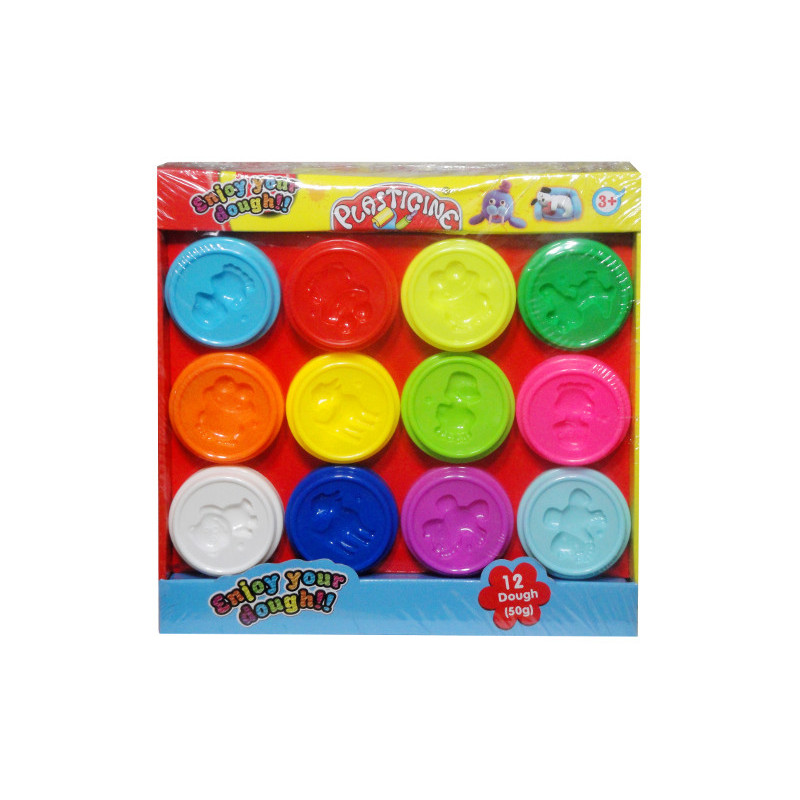 Zestaw masy plastycznej.W skład zestawu wchodzi 12 kubeczków z masą (12 różnych kolorów).Po zakończonej zabawie, ciastolinę należy chować do kubeczków, aby uniknąć jej wyschnięcia (a dalej kruszenia).Zabawka przeznaczona dla dzieci powyżej 3 lat.