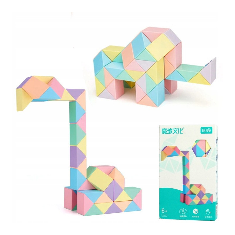 60-elementowa układanka w pastelowych kolorach, która poprzez obracanie elementów daje możliwość ułożenia wielu konfiguracji np. zwierzęta, kształty, figury.