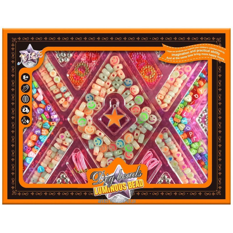 Zestaw świecących w ciemności, kolorowych koralików do tworzenia biżuterii.