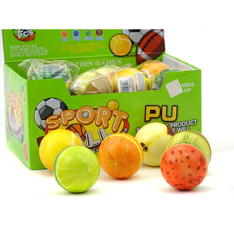 piłeczka piankowa owoce, śred.6cm, display 24szt; 25,5x19,5x13cm