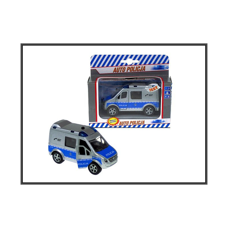 Auto metalowe z napędem z otwieranymi drzwiami , światłem i dźwiękiem .
