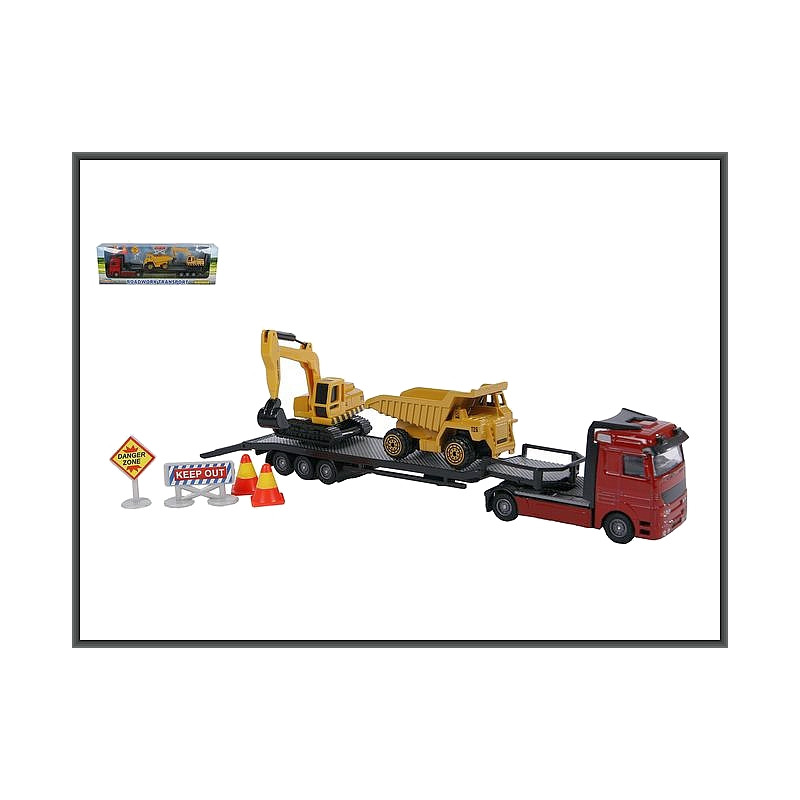 Autotransporter z metalową wywrotką 7cm oraz z metalową koparką 5cm.