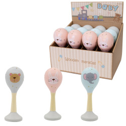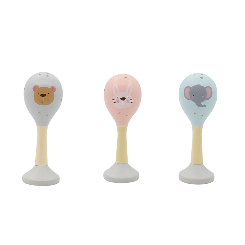 Drewniane marakasy wydają przyjemne, rytmiczne dźwięki. Sprawdzą się jako zabawka muzyczna, ale również dla maluchów jako grzechotka. Kolorowe marakasy zachęcą każde dziecko do tworzenia własnej muzyki. Instrument rozwija zainteresowanie dziecka muzyką, zmysł słuchu, a swoim kształtem i kolorami zachęca dziecko do zabawy.