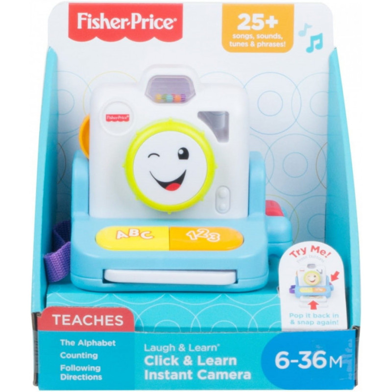 Uwaga! Zrób śmieszną minę! Z wesołym aparatem fotograficznym z linii "Ucz się i śmiej!" Twój mały fotograf może "robić zdjęcia" i słuchać piosenek o literkach, cyferkach i nie tylko. Ten zabawkowy aparat ma "lampę błyskową", realistyczne odgłosy aparatu i elementy aktywizujące, które dziecko będzie z radością odkrywać. Uśmiech, proszę!