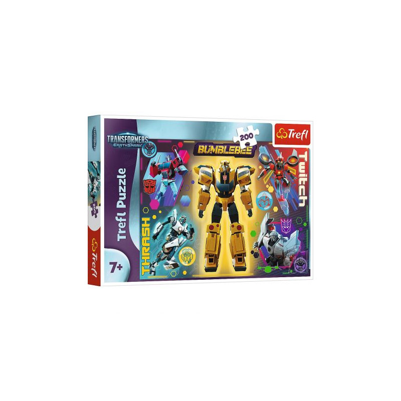 fanach układania puzzli. Puzzle przedstawiają roboty Transformers. Po ułożeniu