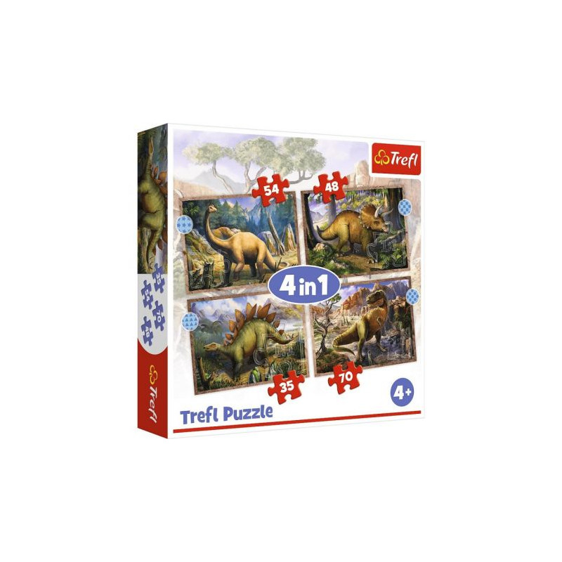 4w1 Ciekawe Dinozaury to aż cztery różne układanki, a każda zawiera inną ilość