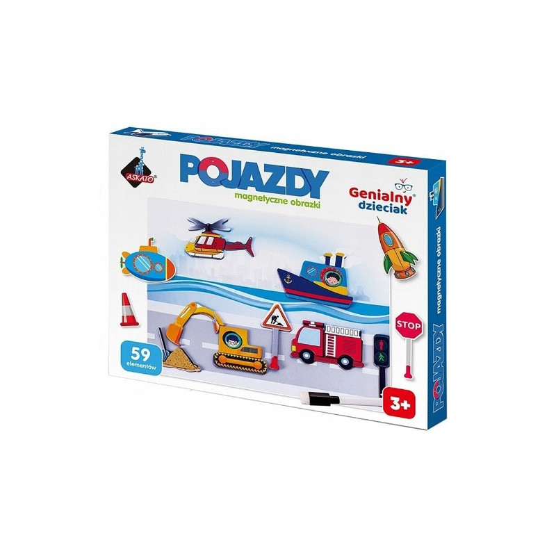 ruchem ulicznym. Zabawa polega na ułożeniu magnetycznych obrazków na planszy. W