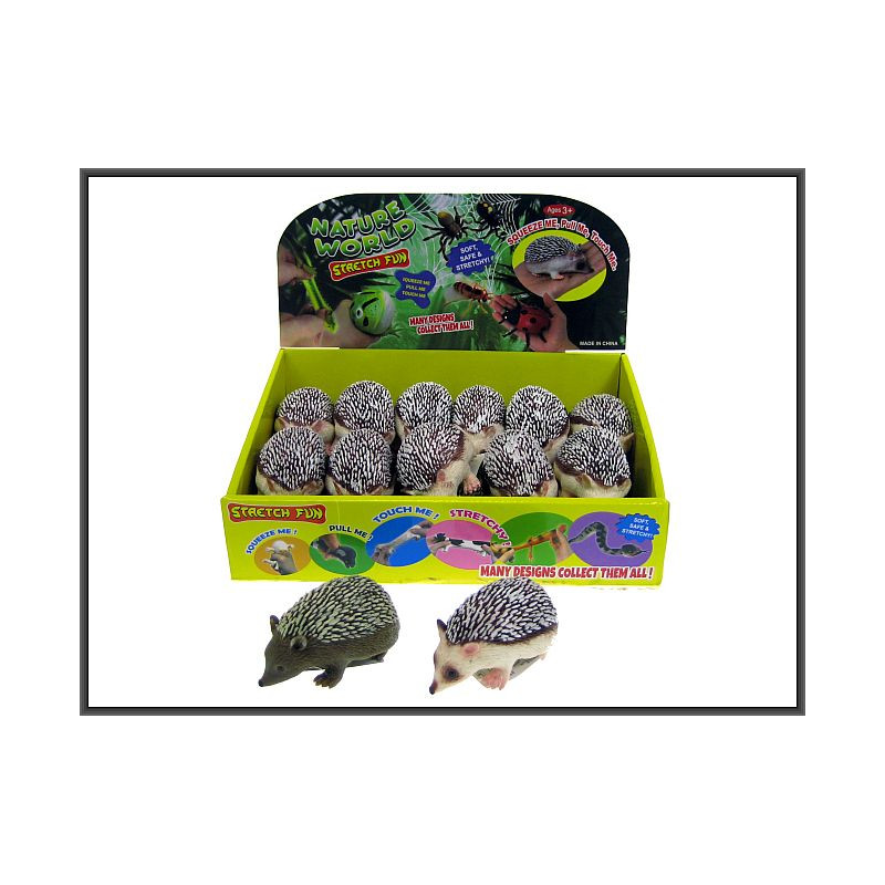 Kolorowy jeżyk wykonany został z elastycznej masy, wypełnionej małymi kuleczkami tzw. groszkiem. Kuleczki podczas zabawy, przemieszczają się. Materiał jest rozciągliwy, miękki i miły w dotyku.