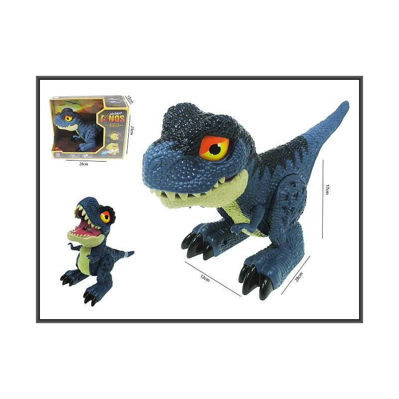 naciśnięciu ogona dinozaur ryczy bardzo realistycznie, z pyska wydobywa mu się