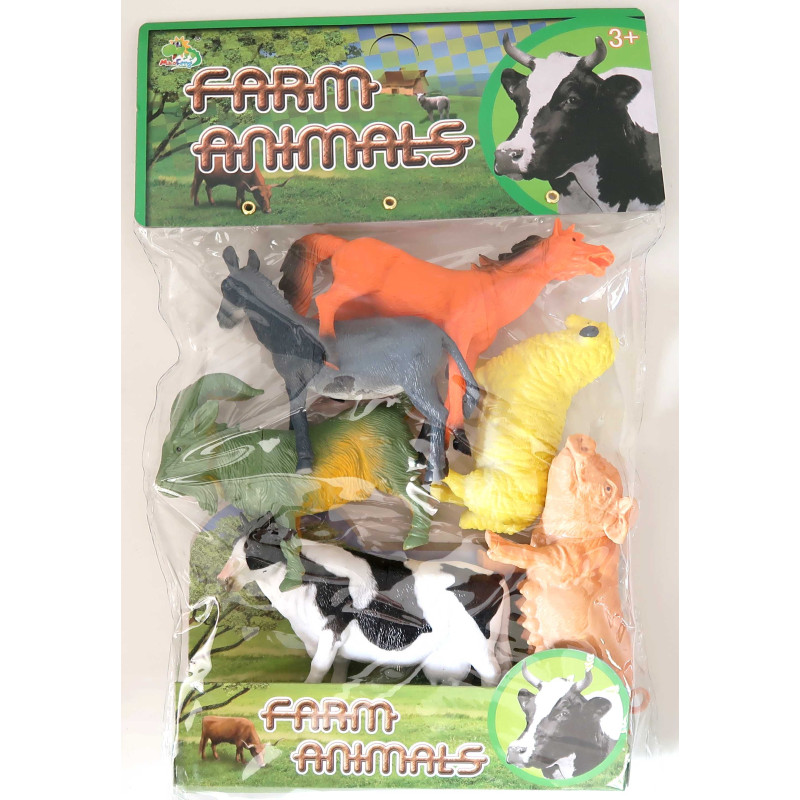 W zestawie 6 figurek zwierząt: koń, owca, świnka, krowa, koza, osiołek